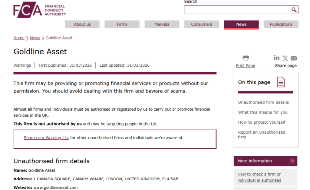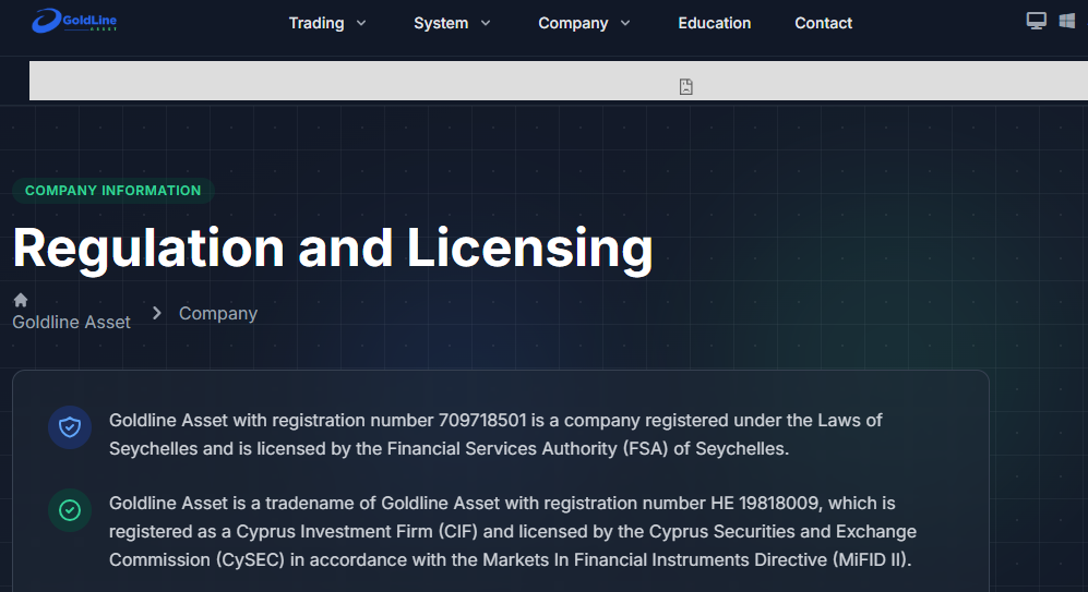 Goldline Asset presents itself as an online trading platform offering investment opportunities in financial markets. According to its website, it claims to be regulated by authorities such as the Seychelles Financial Services Authority (FSA) and the Cyprus Securities and Exchange Commission (CySEC).
